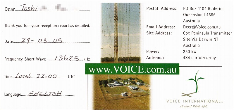 オセアニア地域の国際短波放送 > CVC (Voice International) |